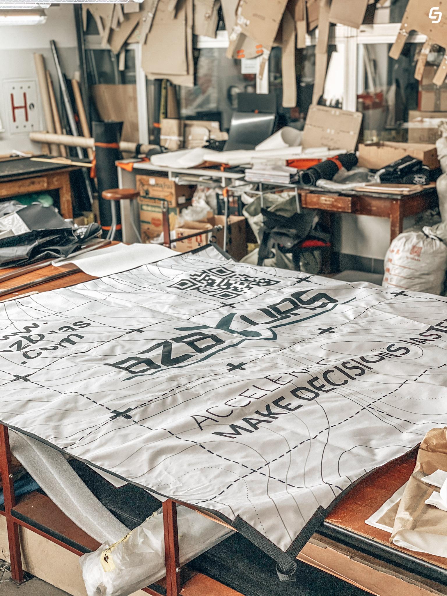 The bag cover is marked with a distinctive graphic that makes our client's brand highly recognizable.